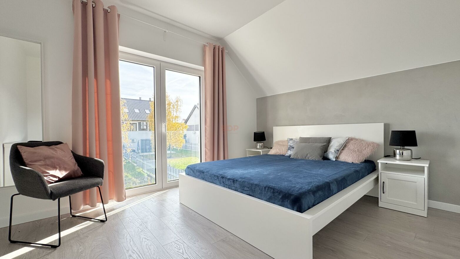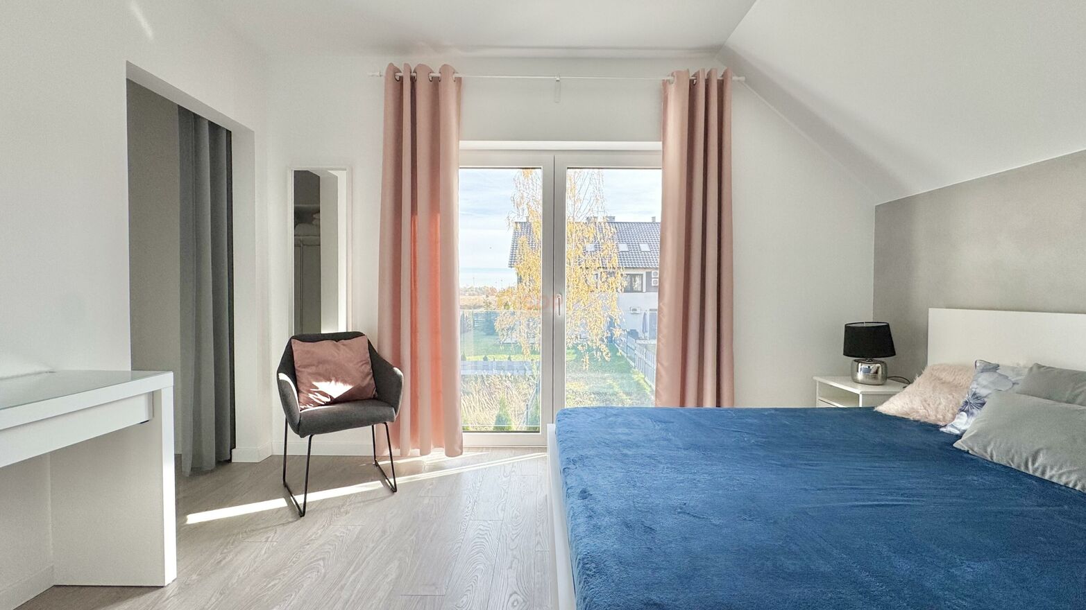 - sypialnia II dwuosobowym łóżkiem, biurkiem i szafą